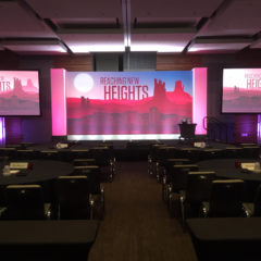 We are revisiting our favorite beautiful backdrops. This one was for a corporate event in Scottsdale, Arizona. Shipped to the W Hotel in Scottsdale in just one case and easily assembled on site, the backdrop measured 10 feet tall by 20 feet wide and was elevated 2 feet off the ground on Hard Panel Scenery.